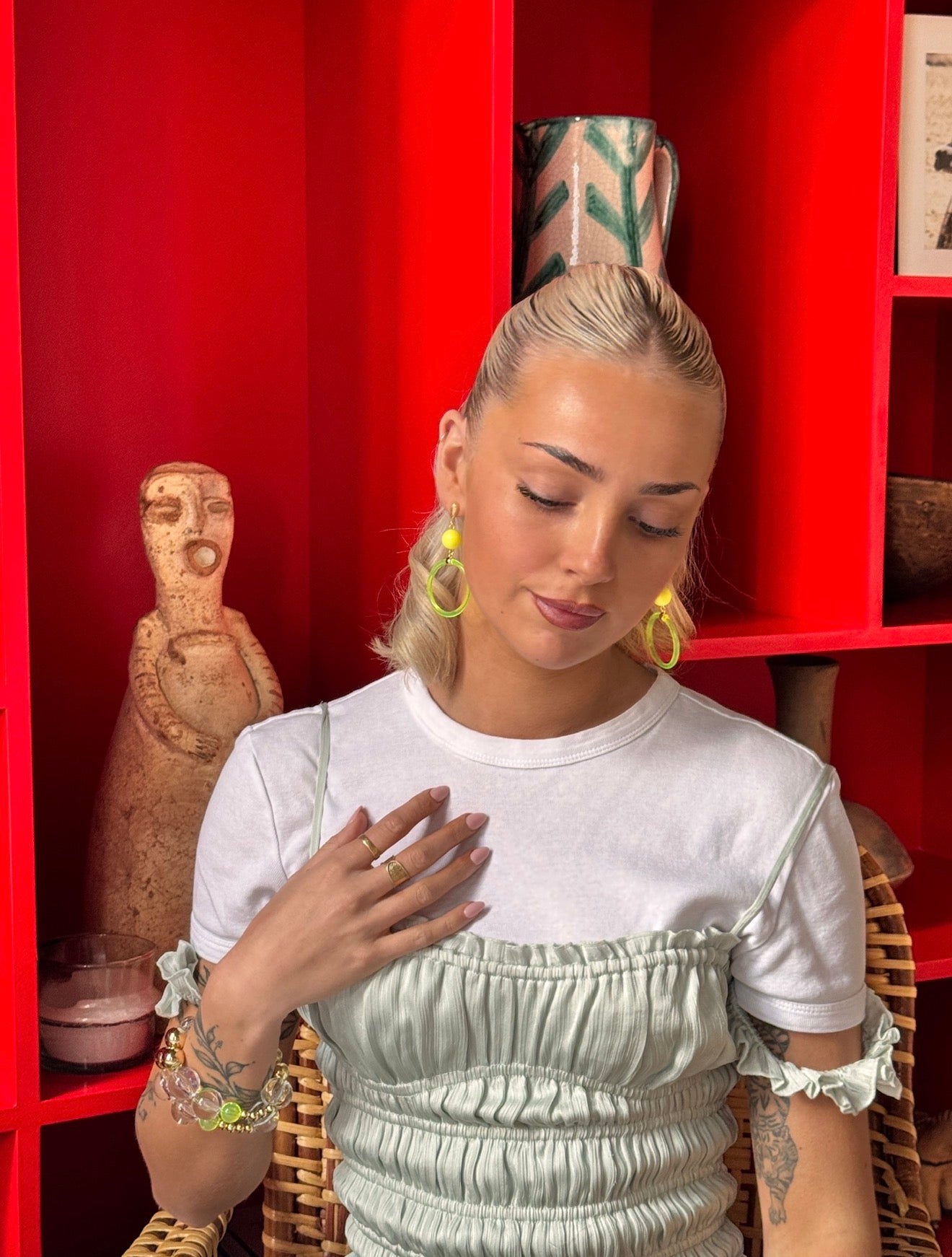 Alonda soft neon yellow pearl, lucite and gold earrings