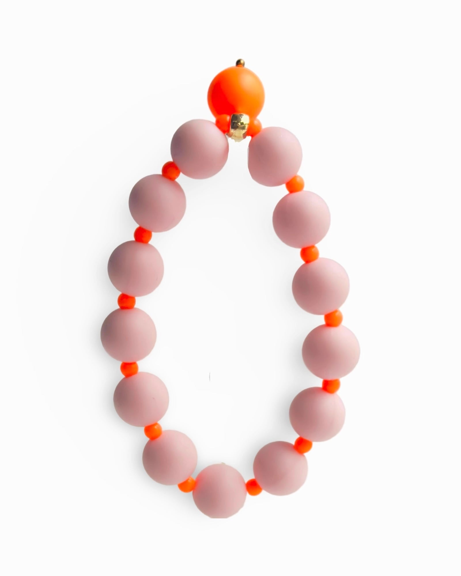 Beau bracelet in pink + orange, neon orange crystal pearl charm