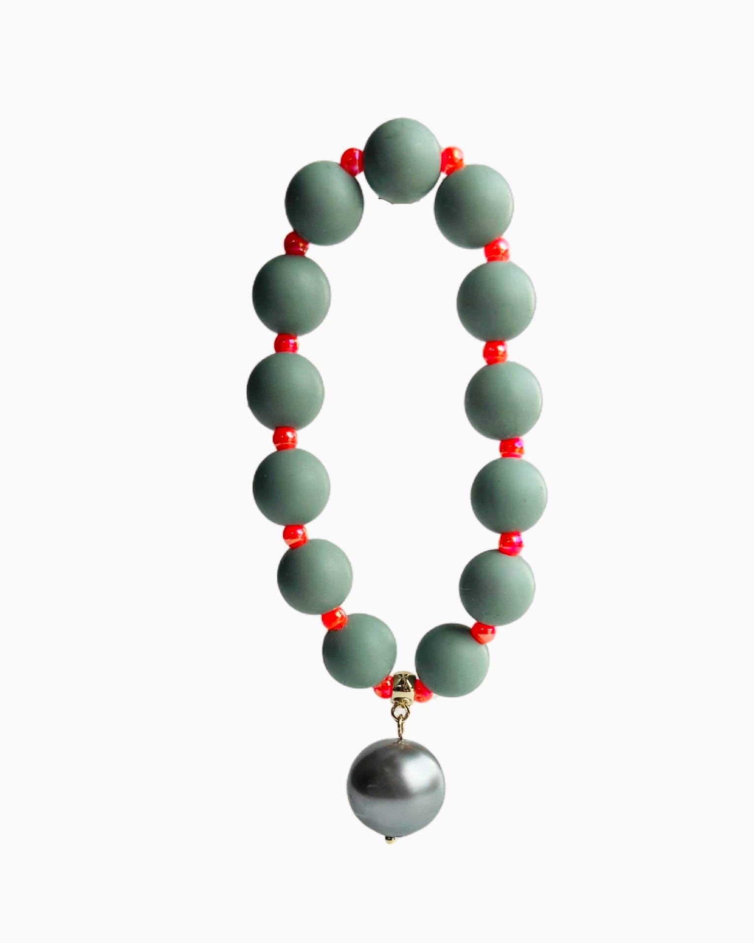 Beau green grey, orange + pearl charm bracelet