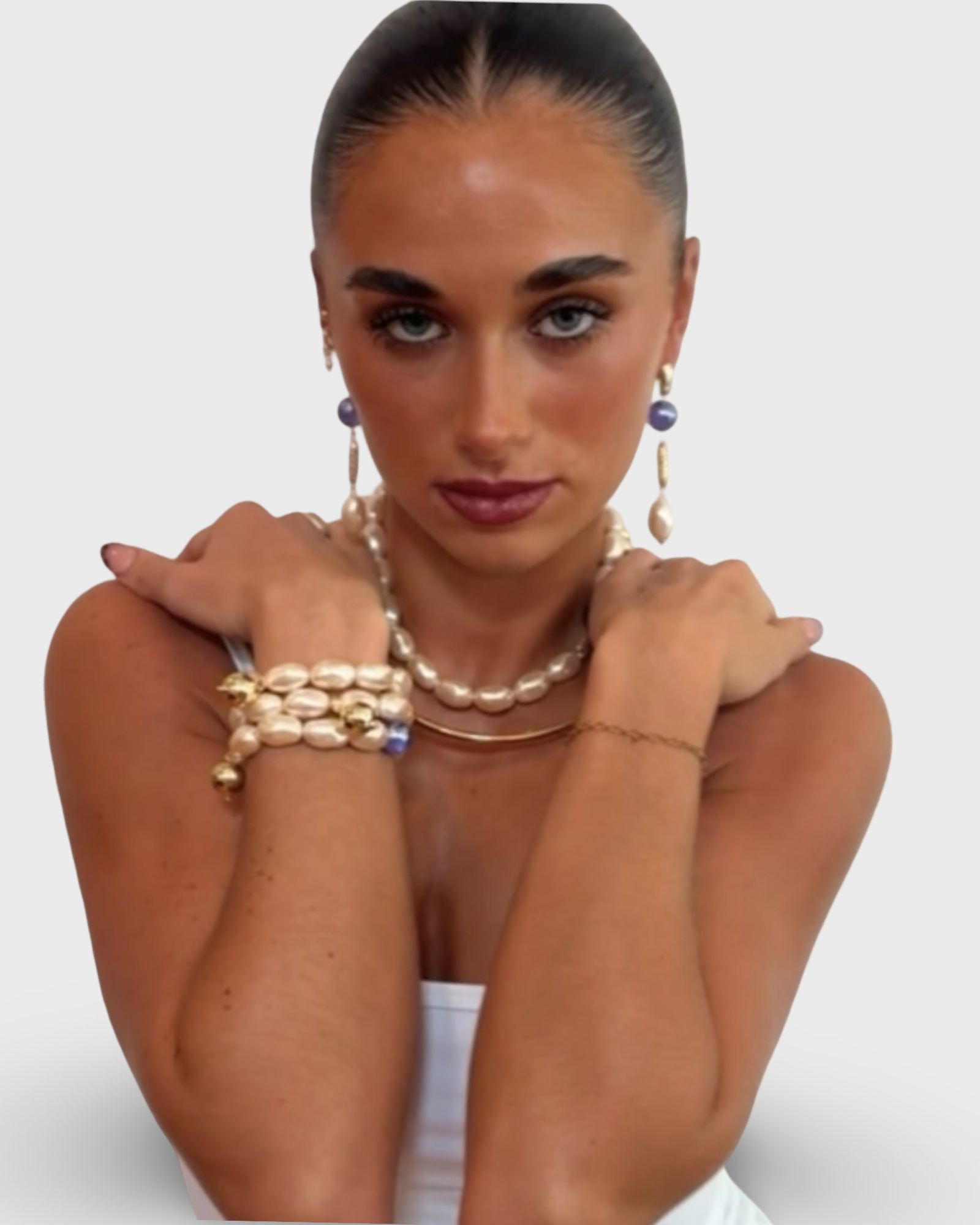 Bejewelled Juliette sapphire crystal soft cream Japanese vintage lucite beaded bracelet