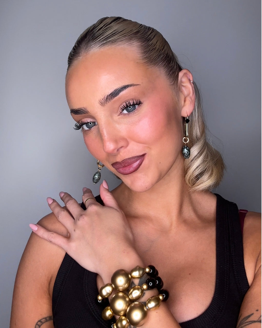 Charlotine jet magic, gold, crystal drop pearl earrings