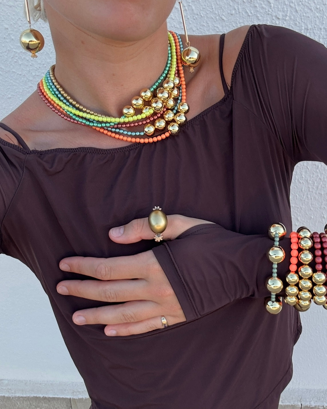 Gold vintage punk pearl ring