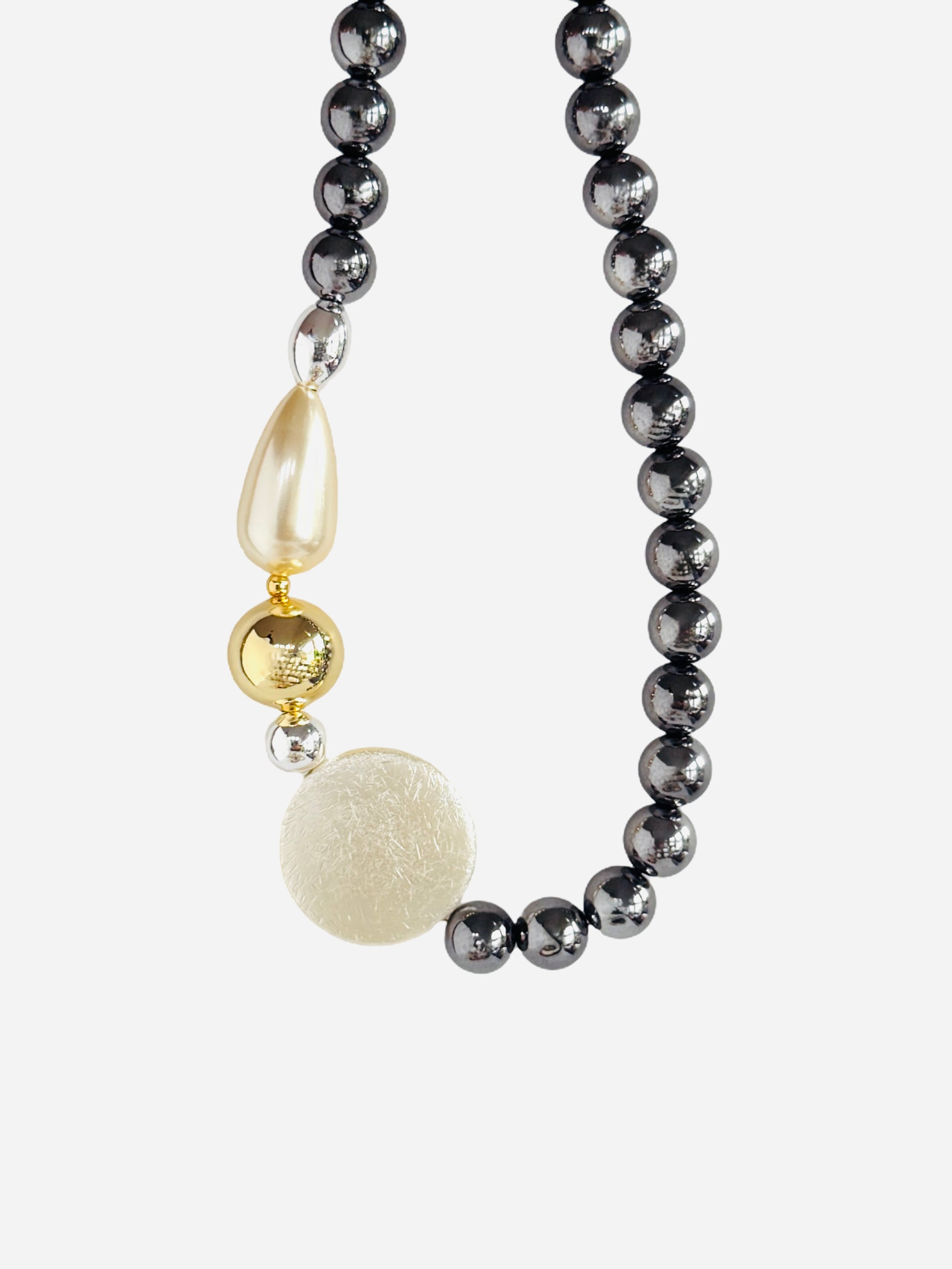 Juju glint vintage pearl, gold, silver + charcoal beaded necklace