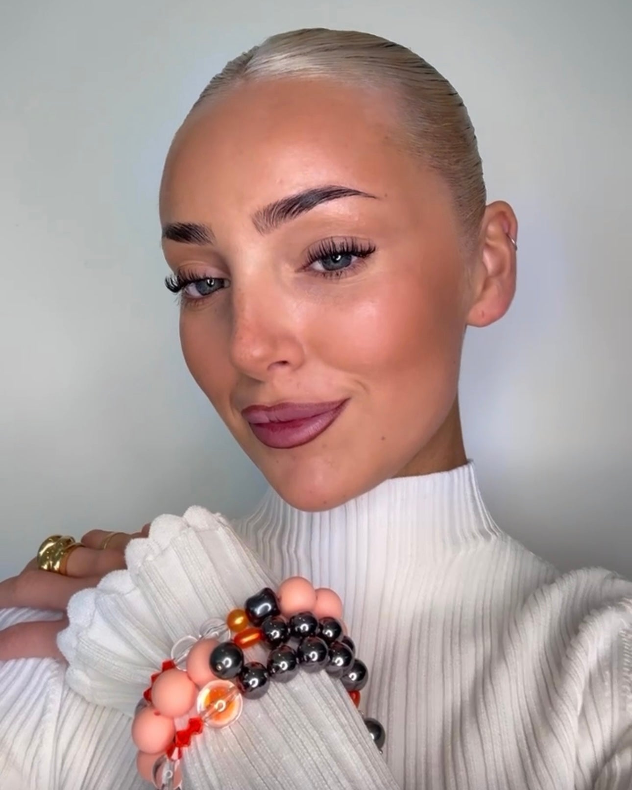 Lottie gloss peach, crystal + vintage beaded, drop crystal pearl charm bracelet