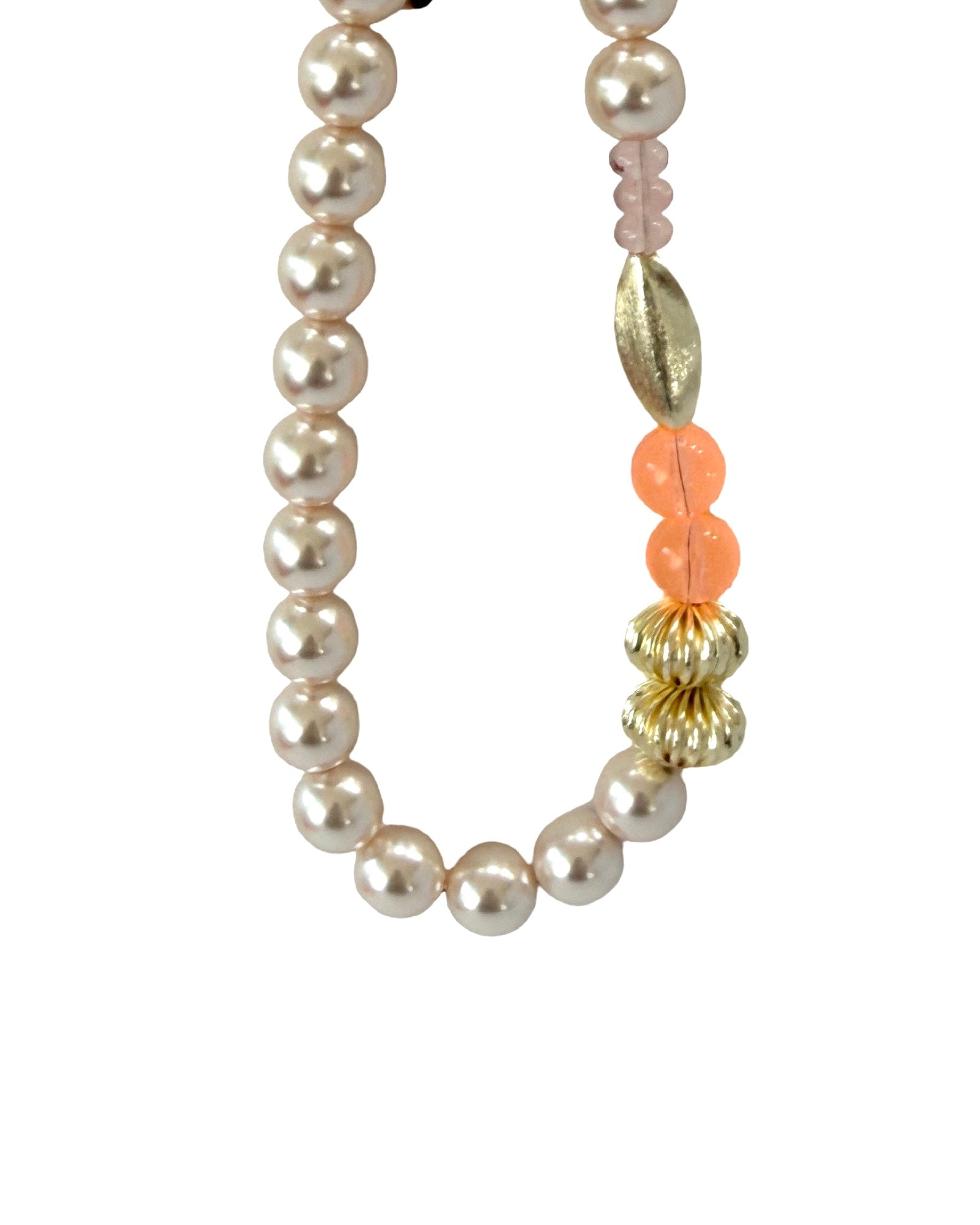 Petula softest pink crystal pearl, soft neon pop peach + gold necklace