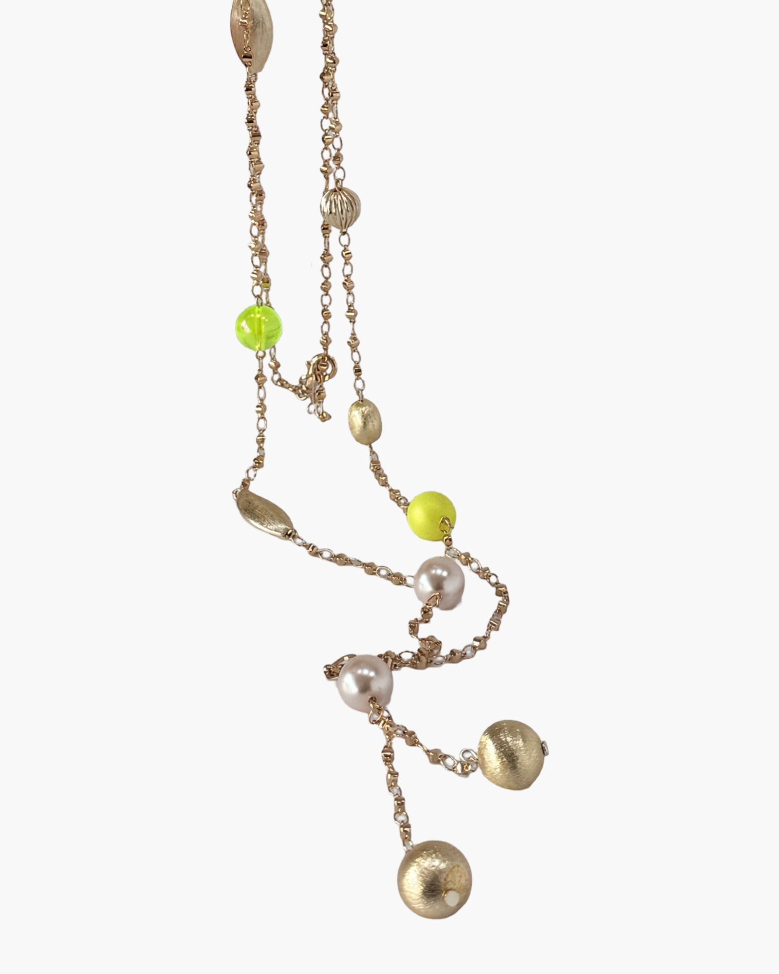 Queenie gold, soft pink + soft neon yellow long drop necklace