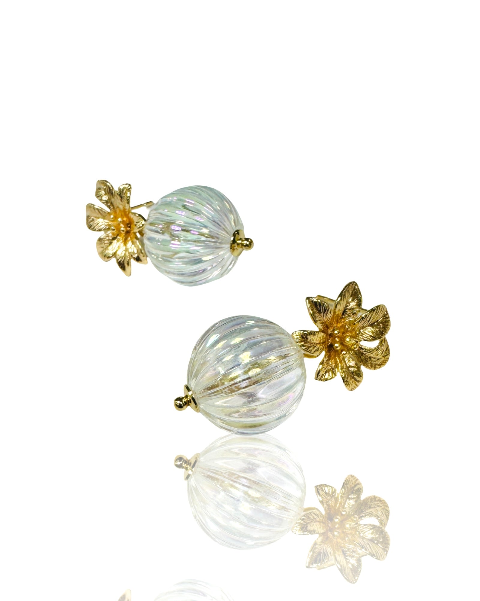 Sara vintage clear iridescent + 14k gold filled flower earrings