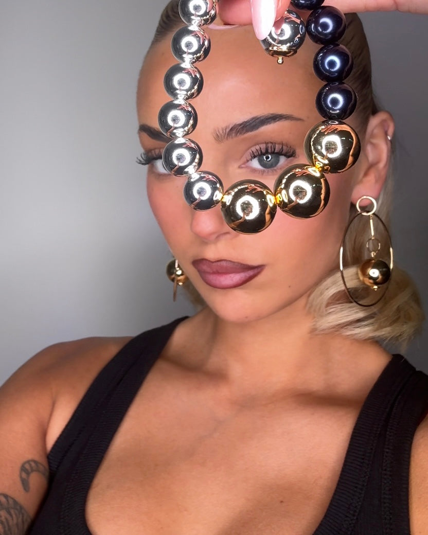 Snow drop gold, silver + navy crystal pearls bracelet, drop silver charm