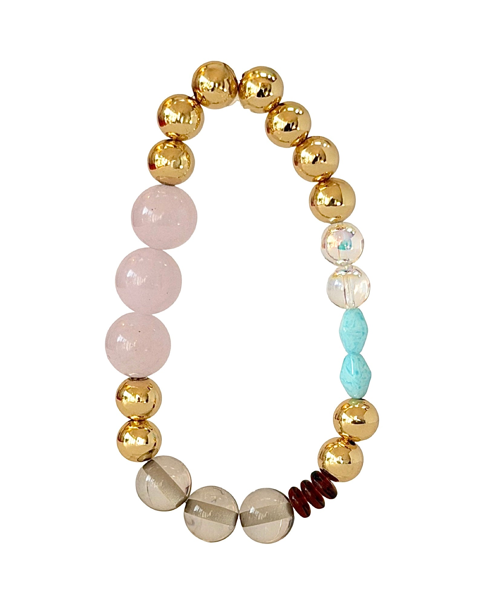 Pickle pie pink jade, crystal, gold + vintage beaded bracelet