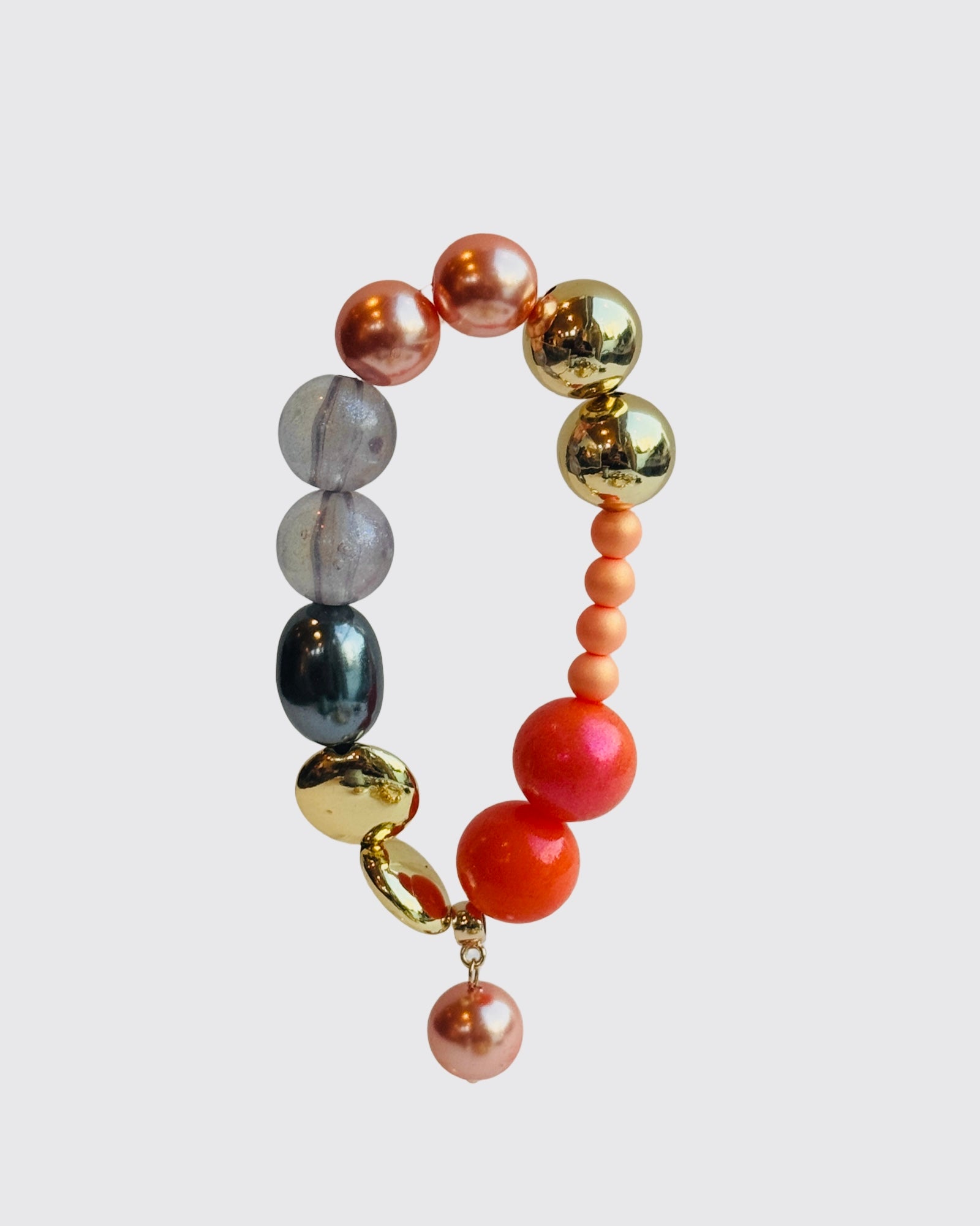 Velvetine valentine orange crush beaded crystal gold bracelet